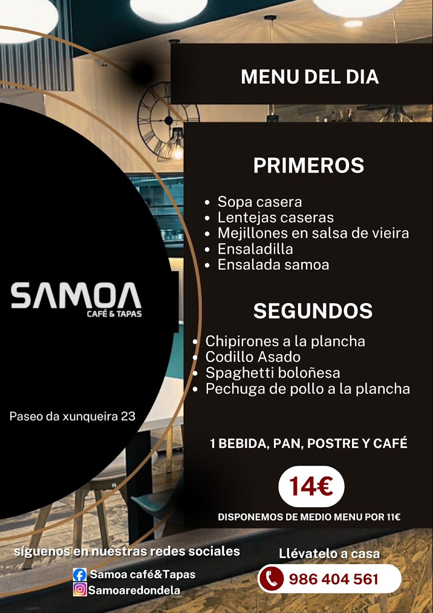 Welcome to Cafés y tapas SAMOA, a vibrant culinary gem nestled in the heart of Redondela, Spain. This unique establishment beautifully combines the ambiance of a coffee shop, restaurant, and tapas bar.